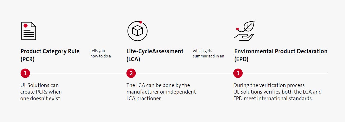 إن تقييم دورة حياة المنتج هو ملخص لتقييم دورة حياة المنتج ( LCA ) من استخراج المواد إلى الإنتاج والشحن والاستهلاك والتخلص منها. يتم تطوير تقييم دورة حياة المنتج وفقًا لقواعد فئة المنتج ( PCRs ) وهى مجموعة من المتطلبات والمنهجيات الحسابية الخاصة بالمنتج تساعد في ضمان جمع البيانات وتحليلها بشكل متسق أثناء إنشاء تقييم دورة حياة المنتج. ولهذا السبب، تتيح تقييم دورة حياة المنتج مقارنة التأثيرات البيئية للمنتجات المماثلة، مما يوفر شفافية متزايدة.